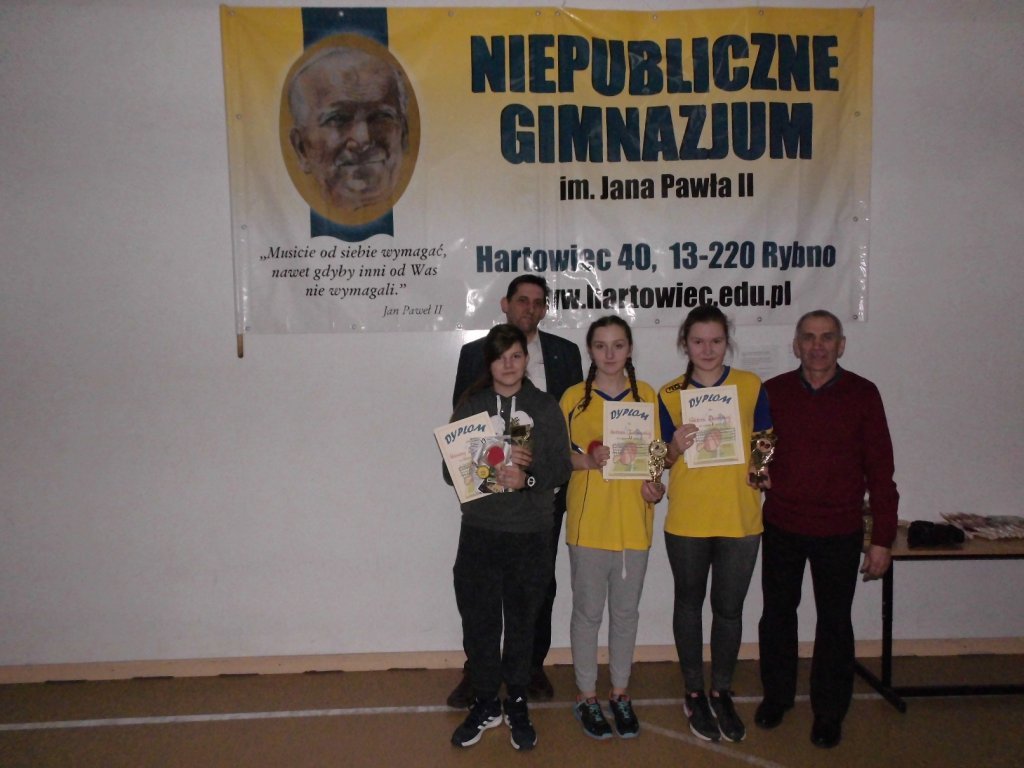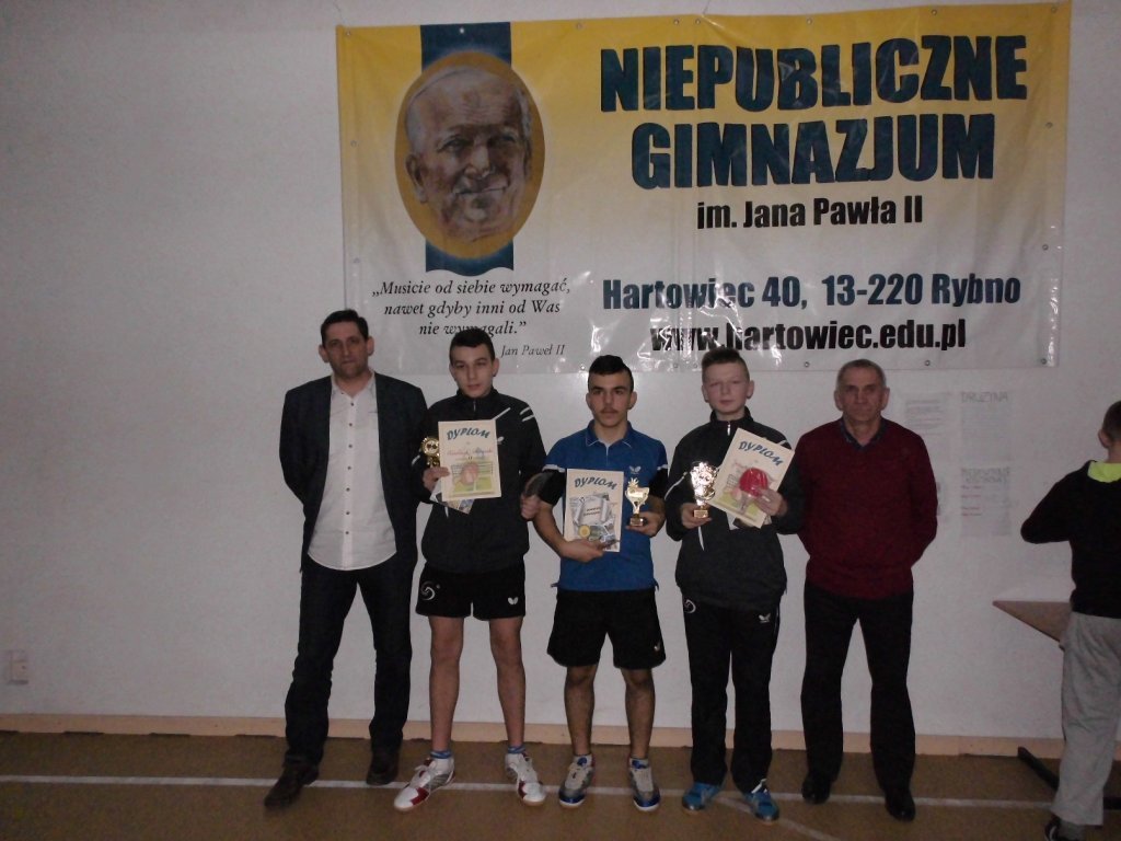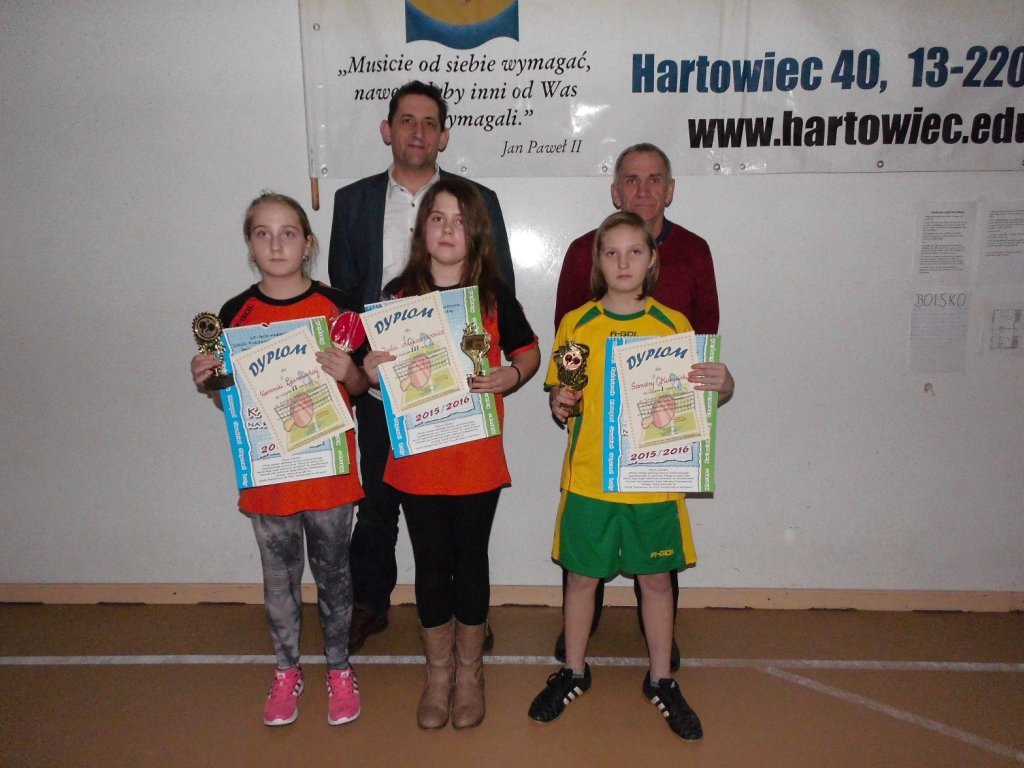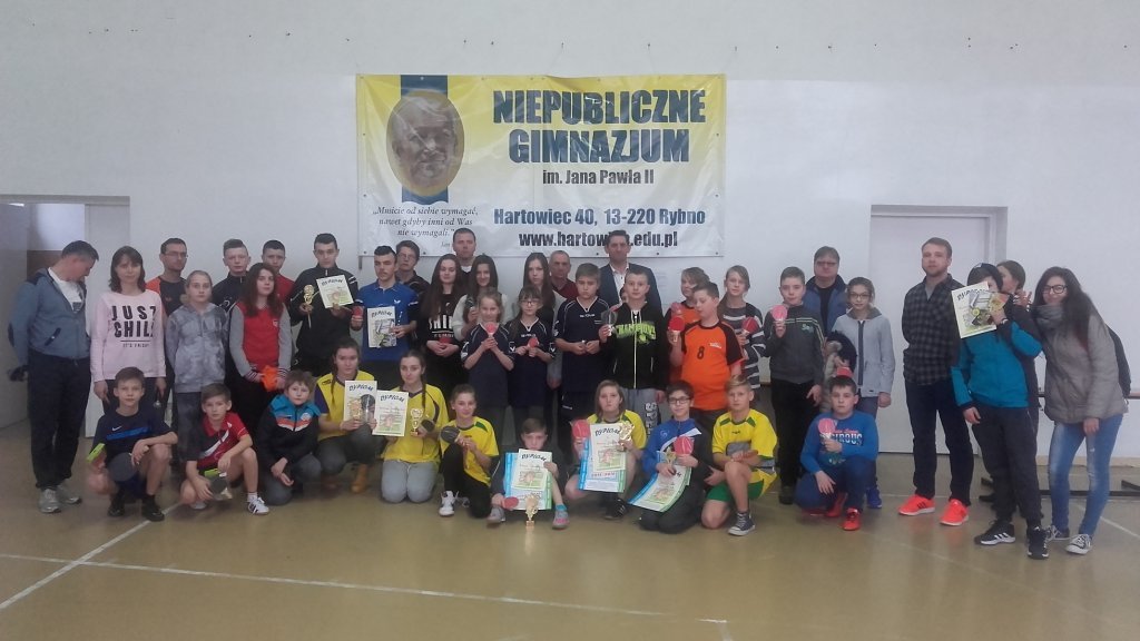26.02.2016 r. w Niepublicznym Gimnazjum im. Jana Pawła II w Hartowcu odbył się Turniej Tenisa Stołowego o Puchar Starosty Powiatu Działdowskiego w kategorii dziewcząt i chłopców szkół podstawowych oraz gimnazjalnych.