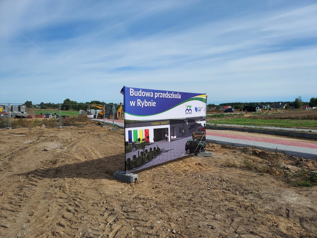 W dniu 07.08.2023 zostały podpisane umowy związane z budową przedszkola w Rybnie na wykonanie robót budowlanych, dostawa i montaż niezbędnego wyposażenie oraz na pełnienie funkcji inspektora nadzoru inwestorskiego. Wartość podpisanych umów wynosi 9.635.017,98 zł, zaś wartość dofinansowania 8.132.319,98 zł.