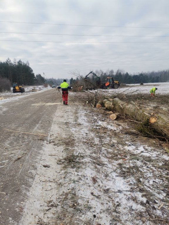 Zakończono wycinkę drzew 53 sztuk topól rosnących w pasie drogi gminnej Koszelewy-Żabiny. Trwa porządkowanie terenu, karczowanie pni i usuwanie karp. Wycinki drzew dokonała firma STANDREW z Uzdowa.