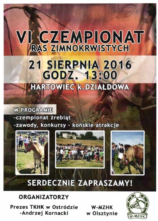 Zapraszamy do udziału w VI Czempionacie Ras Zimnokrwistych, który odbędzie się w dniu 21 sierpnia 2016r. w Hartowcu.