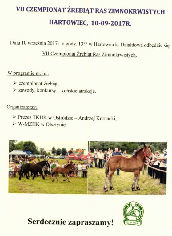 Zapraszamy na VII Czempionat Źrebiąt Ras Zimnokrwistych, który odbędzie się dnia 10 września w Hartowcu.