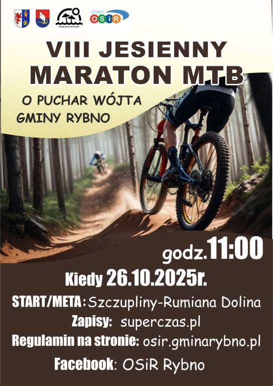 Ośrodek Sportu i Rekreacji w Rybnie zaprasza do udziału w VII Jesiennym Maratonie MTB o Puchar Wójta Gminy Rybno.