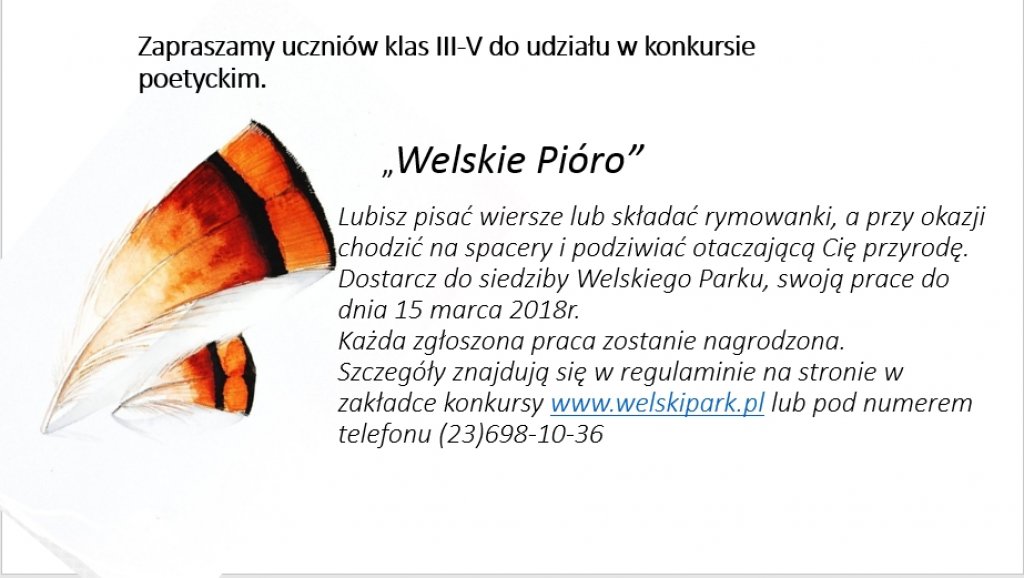 Welski Park Krajobrazowy zaprasza uczniów klas III-V do udziału w konkursie poetyckim.