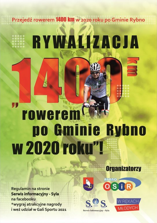 Nieformalna Grupa Młodzieży „W Rękach Młodych”, Gmina Rybno, OSiR Rybno oraz Serwis informacyjny – Syla ma zaszczyt zaprosić na IV edycję rywalizacji pn. „1400 km rowerem po Gminie Rybno w 2020 roku”, której głównym celem jest popularyzowanie zdrowego trybu życia oraz upowszechnianie jeżdżenia na rowerze jako najprostszej formy aktywności.