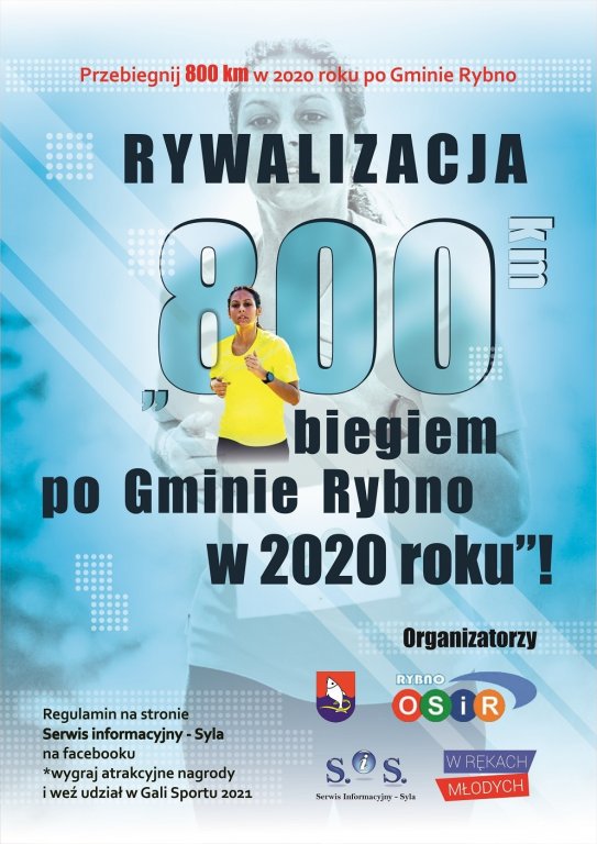 Nieformalna Grupa Młodzieży „W Rękach Młodych”, Serwis informacyjny – Syla, Gmina Rybno oraz OSiR Rybno ma zaszczyt zaprosić na V rywalizację pn. „800 km biegiem po Gminie Rybno w 2020 roku”, której głównym celem jest popularyzowanie zdrowego trybu życia oraz upowszechnianie biegania jako najprostszej formy aktywności.