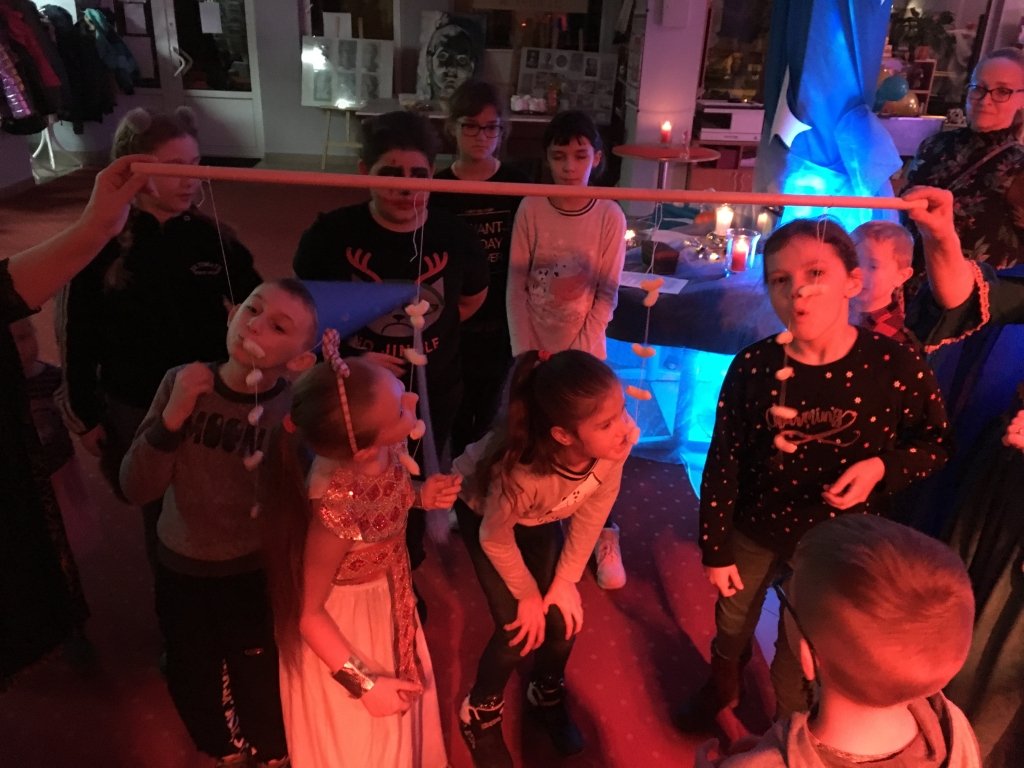 Atrakcją wieczoru było lanie wosku, a także wróżby ukryte w balonach, magiczne koło, worek pełen niespodzianek i taniec ze szkatułką. Dużym zainteresowaniem cieszył się konkurs „kto pierwszy zje chrupki na sznurkach”.
