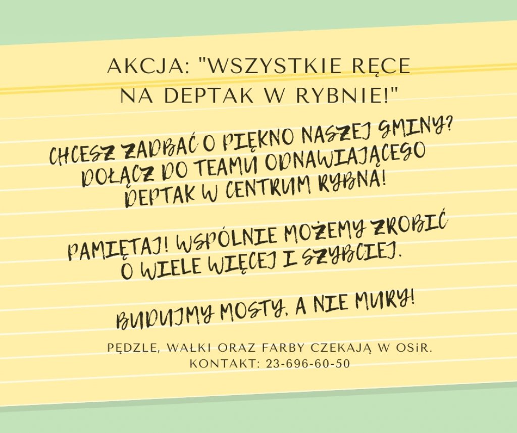 Chcesz zadbać o piękno naszej gminy? Dołącz do teamu odnawiającego deptak w centrum Rybna.