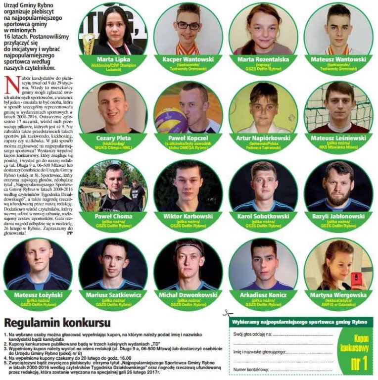 Tygodnik Działdowski postanowił także przyłączyć się do tej inicjatywy i wybrać najpopularniejszego sportowca według czytelników. Kupony znajdziecie w trzech kolejnych wydaniach Tygodnika Działdowskiego.