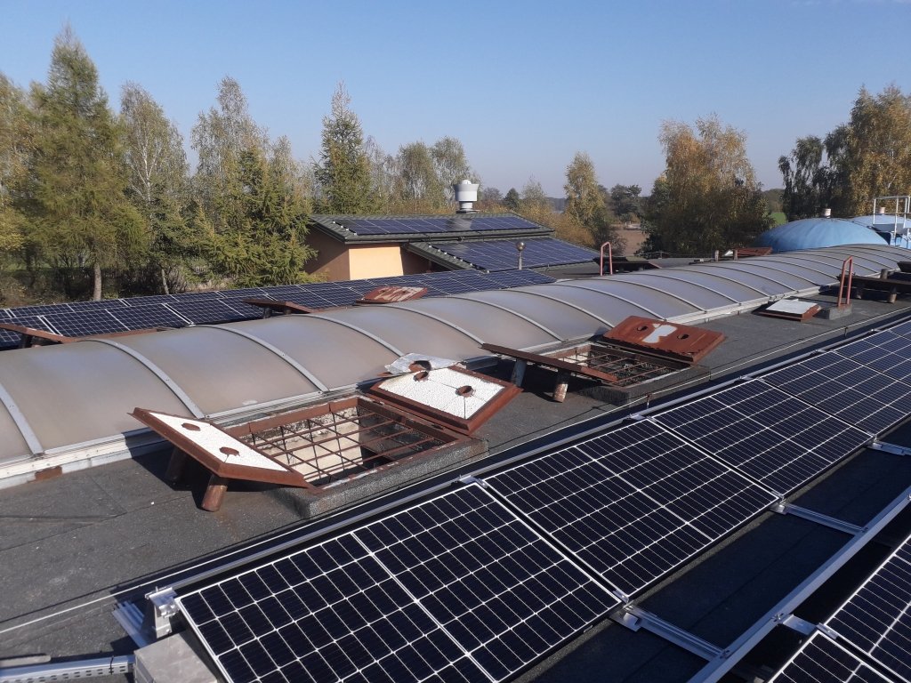 W ramach Regionalnego Programu operacyjnego Województwa Warmińsko – Mazurskiego na lata 2014-2020 Zakład Gospodarki Komunalnej w Rybnie Sp. z o.o. pozyskał dofinansowanie i wybudował instalację fotowoltaiczną o łącznej mocy 39,68 kWp, która została zainstalowana na budynkach Oczyszczalni Ścieków.