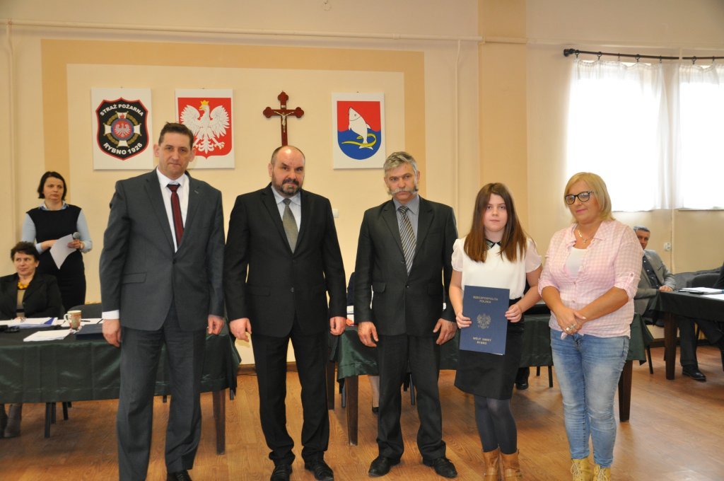 Ważnym punktem obrad było także wręczenie stypendiów naukowych dla uczniów szkół z terenu Gminy Rybno, którzy wyróżniają się wśród rówieśników wysokimi wynikami w nauce.