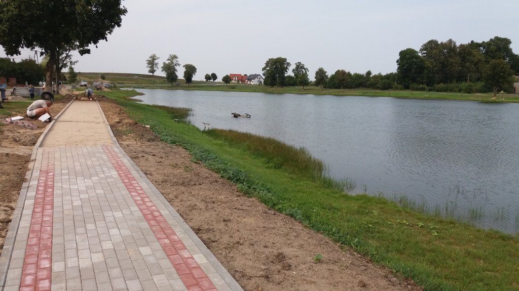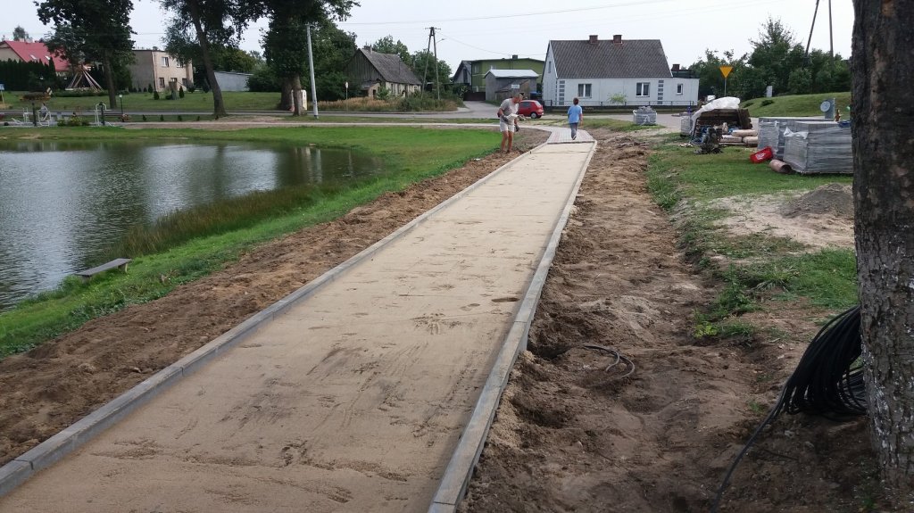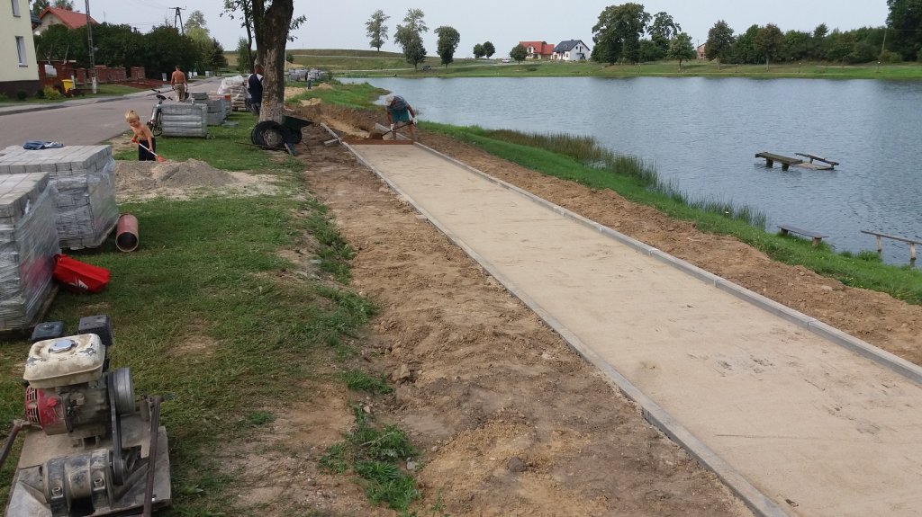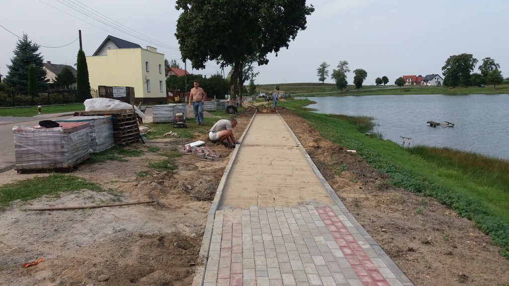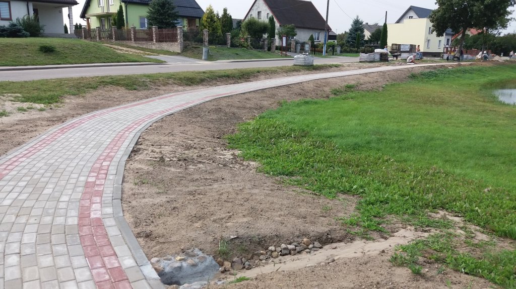 Środki na ten cel mieszkańcy zabezpieczyli w funduszu sołeckim na 2018 rok oraz pozyskali od pobliskich sponsorów. Kostkę ufundowała firma Direx. Gdy mężczyźni pracują przy budowie deptaka, kobiety dbają o piękną roślinność na całej długości ścieszki pieszo-rowerowej.