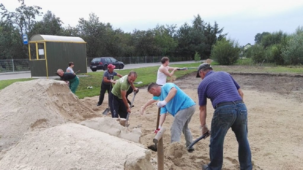 Mieszkańcy Sołectwa – Żabiny na czele z Radnym Gminy Rybno – Grzegorzem Rozentalskim i Sołtysem wsi – Edmundem Gajek rozpoczęli budowę boiska do piłki plażowej.