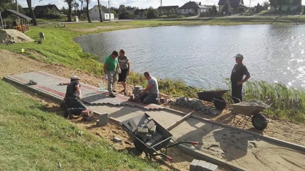 W pracach związanych z wykonaniem deptaka uczestniczą również pracownicy zatrudnieni w ramach robót interwencyjnych. Pomocy nie odmówili również druhowie z miejscowej Ochotniczej Straży Pożarnej, którzy zajęli się udrożnieniem przepustu pod drogą wojewódzką.