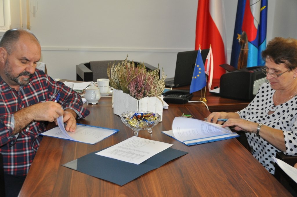 Dnia, 9 października 2018 r. w siedzibie Urzędu Gminy Rybno została podpisana umowa z Firmą Remontowo - Budowlaną Wiesław Zdzisław Dawid z Działdowa na budowę podjazdu z poręczami na zewnątrz budynku, wyposażenie schodów wewnętrznych w platformę składana z poręczami oraz dostosowanie pomieszczenia higieniczno-sanitarnego do potrzeb osób niepełnosprawnych w Szkole Podstawowej im. Polskich Mistrzów Olimpijskich w Żabinach.