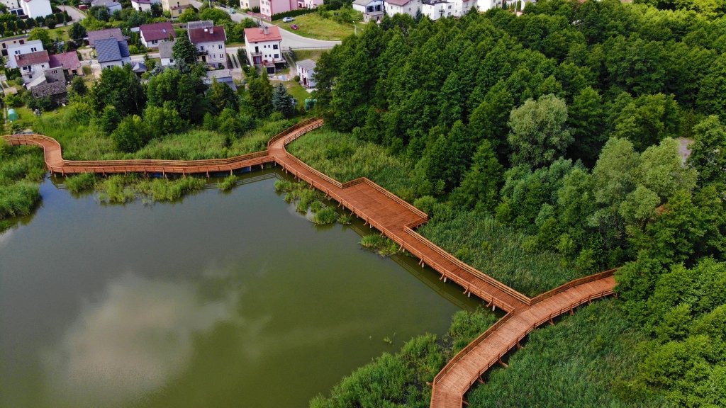 Wykonawca ścieżki edukacyjnej wokół jeziora Rybno w ramach podpisanej umowy dokonał napraw gwarancyjnych dużego tarasu znajdującego się na ścieżce.