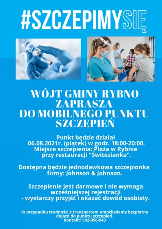 W przypadku trudności z dotarciem do punktu szczepień umożliwiamy bezpłatny transport - tel. 502 056 943 (telefon czynny w w godz. 8:00 - 16:00)