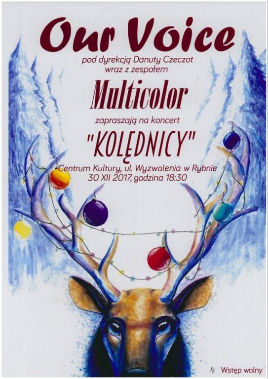 W sobotę, 30 grudnia o godz. 18:30 do Centrum Kultury-Biblioteka w Rybnie zaprasza Our Voice pod dyrekcją Danuty Czeczot wraz z zespołem Multicolor na koncert „Kolędnicy”! Wstęp wolny. Serdecznie zapraszamy!