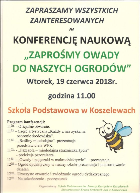 Zapraszamy na konferencję naukową o owadach, która odbędzie się w dniu 19 czerwca 2018r. (wtorek) w Szkole Podstawowej w Koszelewach.