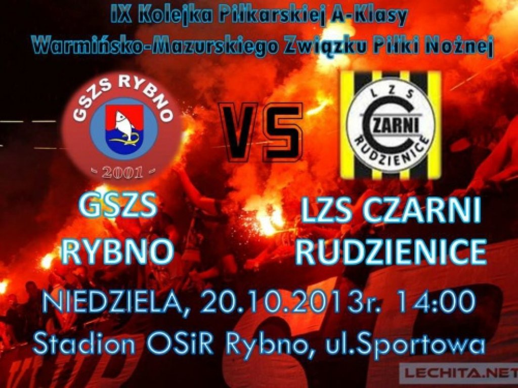 W najbliższą niedzielę (20.10.2013) na stadionie przy ulicy Sportowej w Rybnie odbędzie się mecz piłki nożnej o mistrzostwo IV grupy warmińsko-mazurskiej klasy "A" pomiędzy drużynami: GSZS Rybno i "Czarni" Rudzienice.