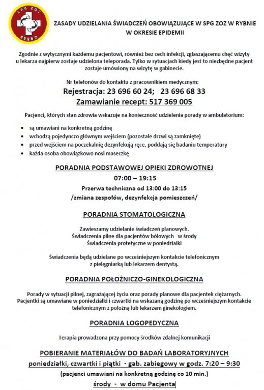 Zasady udzielania świadczeń w Samodzielnym Publicznym Gminnym Zakładzie Opieki Zdrowotnej w Rybnie.