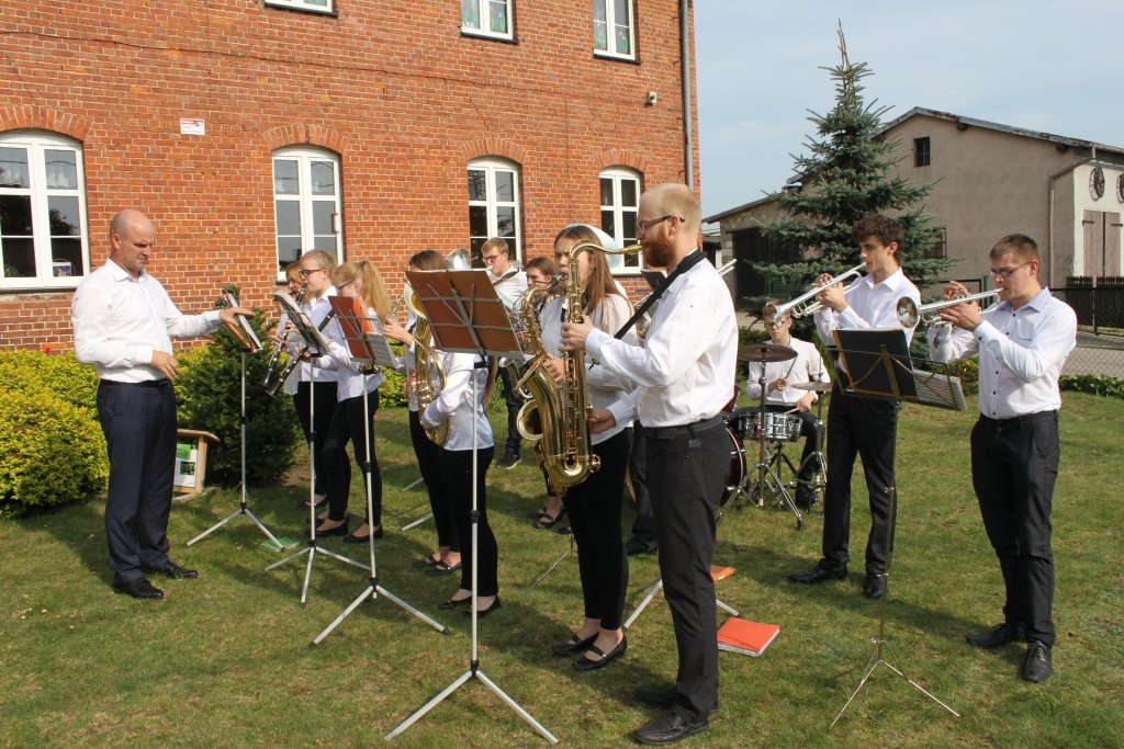 Po uroczystym obiedzie uczestnicy zjazdu absolwentów przejechali autobusem na zwiedzanie swojej byłej placówki wraz z jej obecnym dyrektorem – Bożeną Dobrzyńską. Przed wejściem do Szkoły Podstawowej im. Kawalerów Orderu Uśmiechu gościom uświetniła czas Młodzieżowa Orkiestra Dęta pod przewodnictwem Jarosława Rolkowskiego. W spotkaniu uczestniczył także Wójt Gminy Rybno - Tomasz Węgrzynowski. Absolwenci przeglądali zdjęcia ze szkolnych lat oraz robili pamiątkowe zdjęcia. Przygotowano także specjalnie na tę uroczystość tort, którego świeczki zdmuchnęli nauczyciele, uczący absolwentów. Zjazd absolwentów to wyjątkowe chwile, które pozostaną w ich pamięci na zawsze.