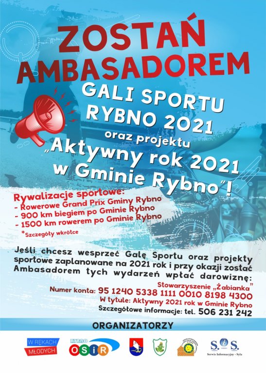 Zostań Ambasadorem Gali Sportu Rybno 2021 oraz projektu „Aktywny 2021 rok w Gminie Rybno”.