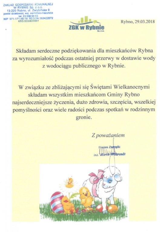 Życzenia Świąteczne Preresa ZGK w Rybnie