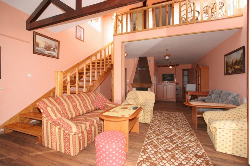 Dysponujemy całorocznymi domami dwupoziomowymi (do 6 osób) z widokiem na jezioro. Na parterze znajduje się salon z kominkiem, kompletnie wyposażona kuchnia z możliwością gotowania oraz łazienka z wanną i prysznicem. Każdy dom wyposażony jest w telewizję cyfrową oraz możliwość podłączenia do Internetu WIFI