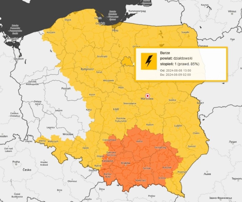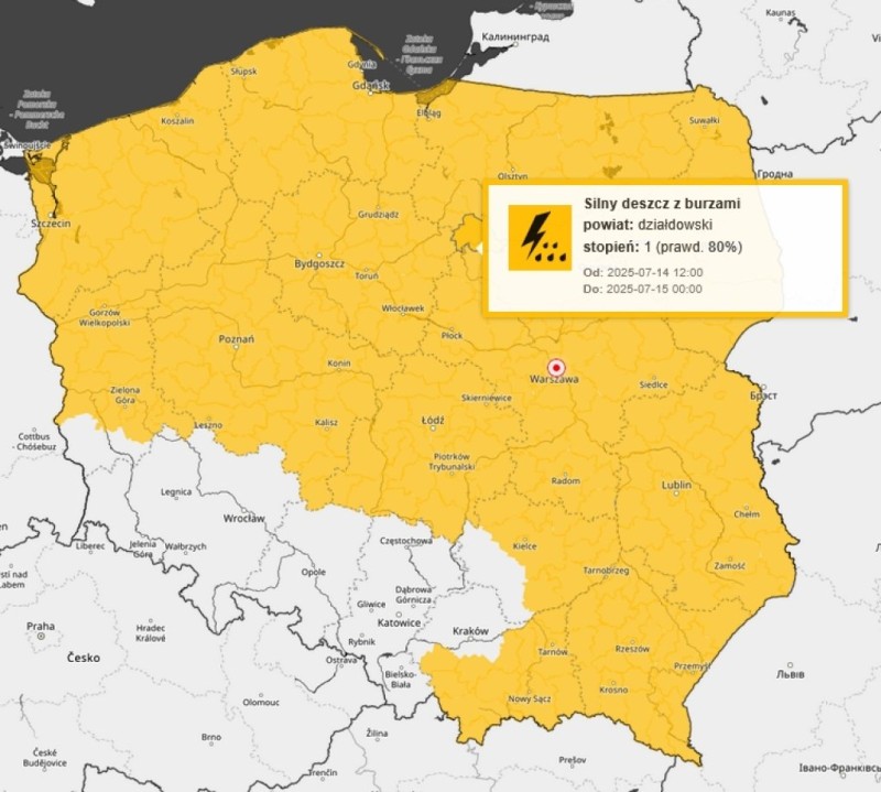 Ostrzeżenie meteorologiczne - burze, intensywne opady deszczu